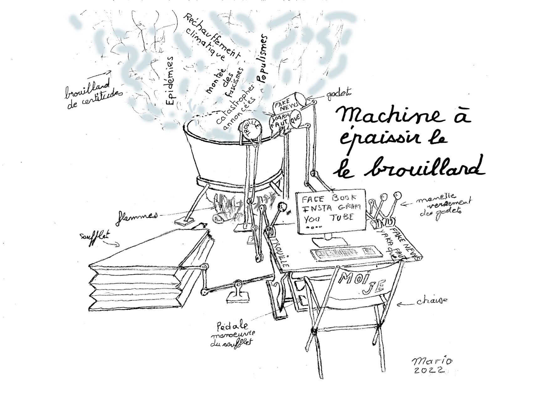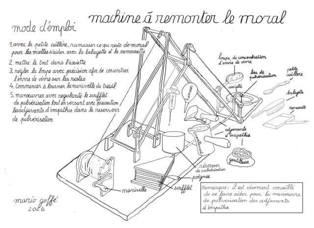 Les dessins ici présentés ont été réalisés comme vœux de nouvel an depuis 2016. Ces machines ont été inspirées par les reflexions ou les émotions, parfois personnelles, vécues dans l'année qui venait de finir